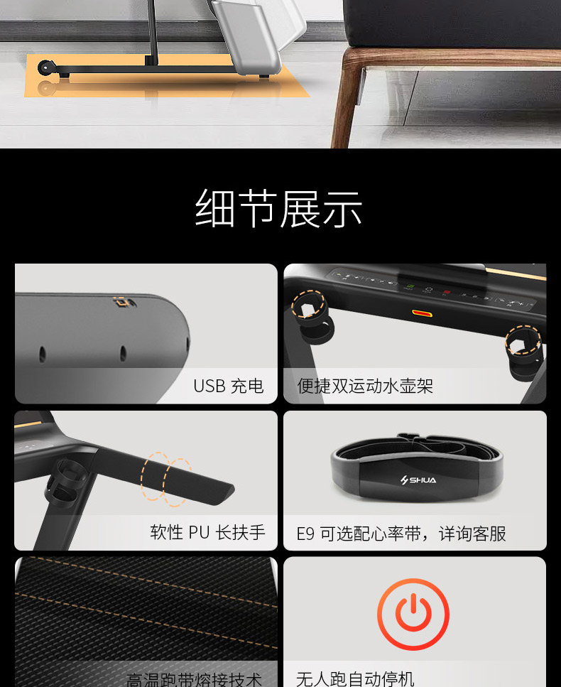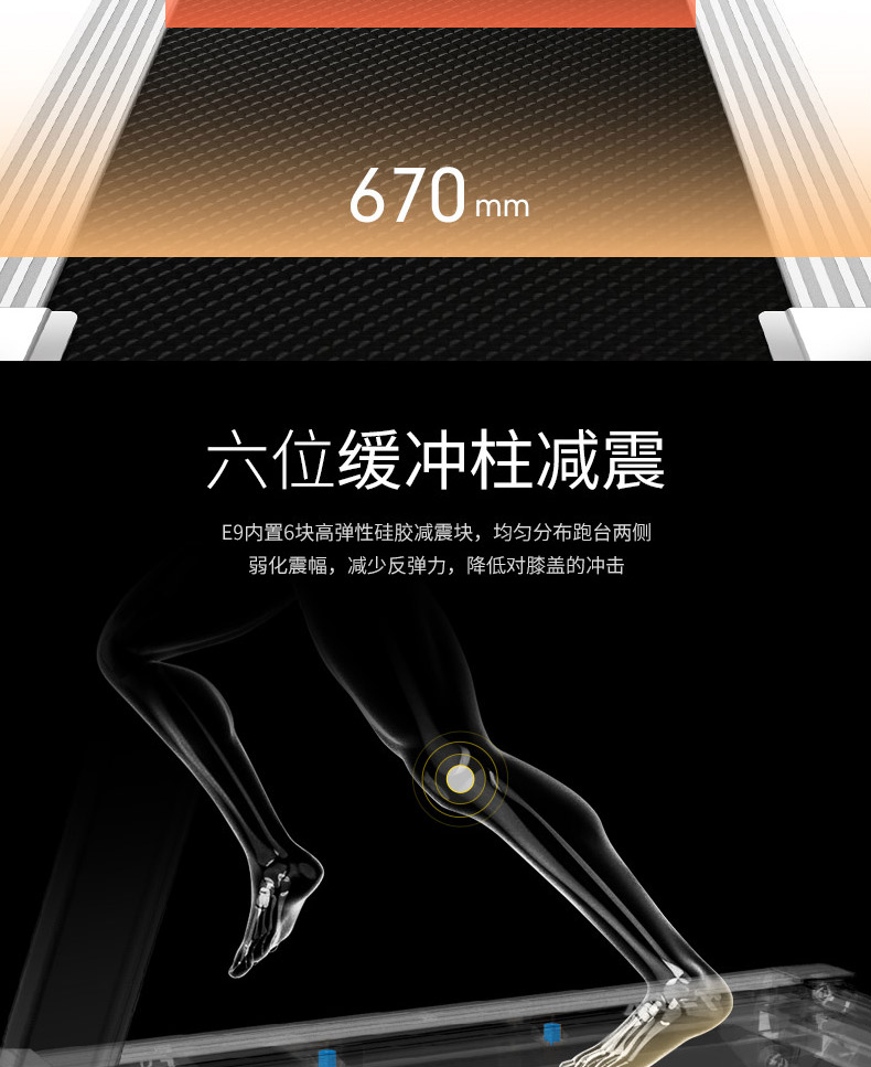 | 跑带 | T1.6mm 钻石纹 | 减震系统 | 6位硅胶减震 |