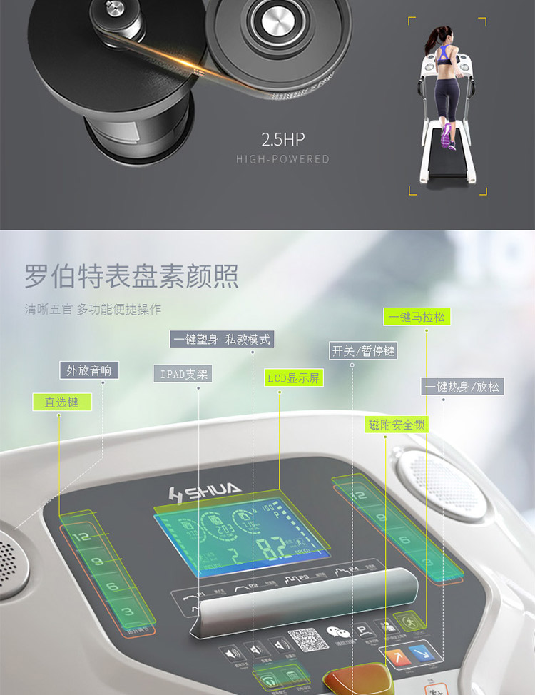| 跑板 | T18+12mm 区域双跑板 | 跑带 | T1.6mm 钻石纹 |