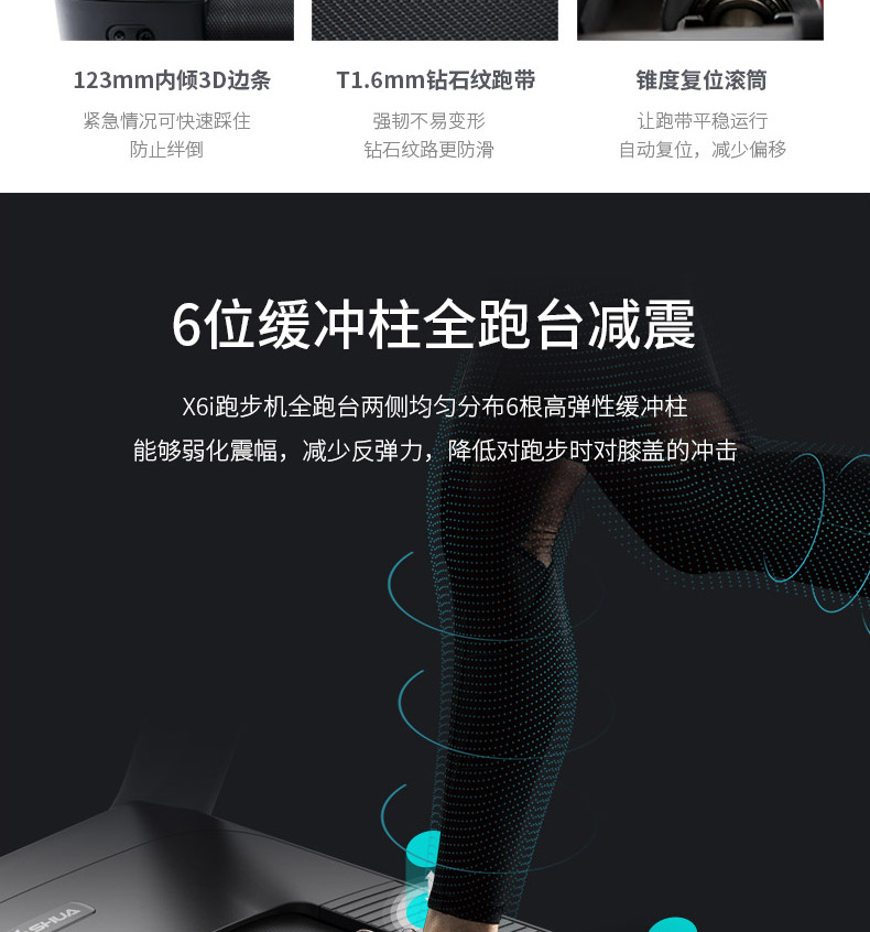 | 跑带 | T1.6mm 钻石纹 | 减震系统 | 8位硅胶减震 |
