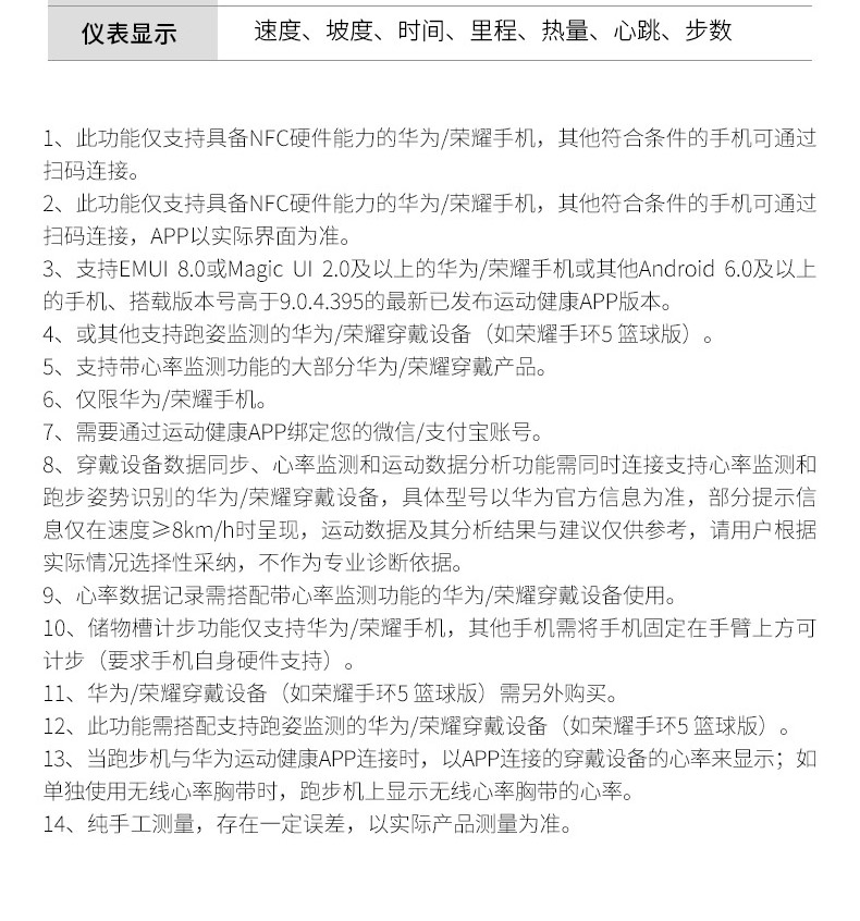 | 无线心率感应 | 无线心率测试(选配J-H200无线心率带) | 其他功能 | 触摸式按键,可连接华为运动健康APP |